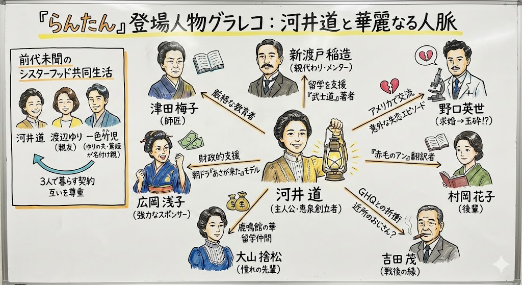 小説『らんたん』は、まさにこの「シスターフッド」がテーマの作品となっており、結婚よりも優先された絆 として、ゆりがプロポーズを受けた際の条件が「道を含めた3人で暮らすこと」だったというエピソードは、当時の「結婚したら夫に尽くす」という常識よりも、「女性同士の絆」を優先、あるいは同等に大切だと考えた結果です。恋愛や結婚といった制度の枠組みに収まらない、魂レベルでの女性同士の結びつき。それが『らんたん』で描かれたシスターフッドの形となってます。